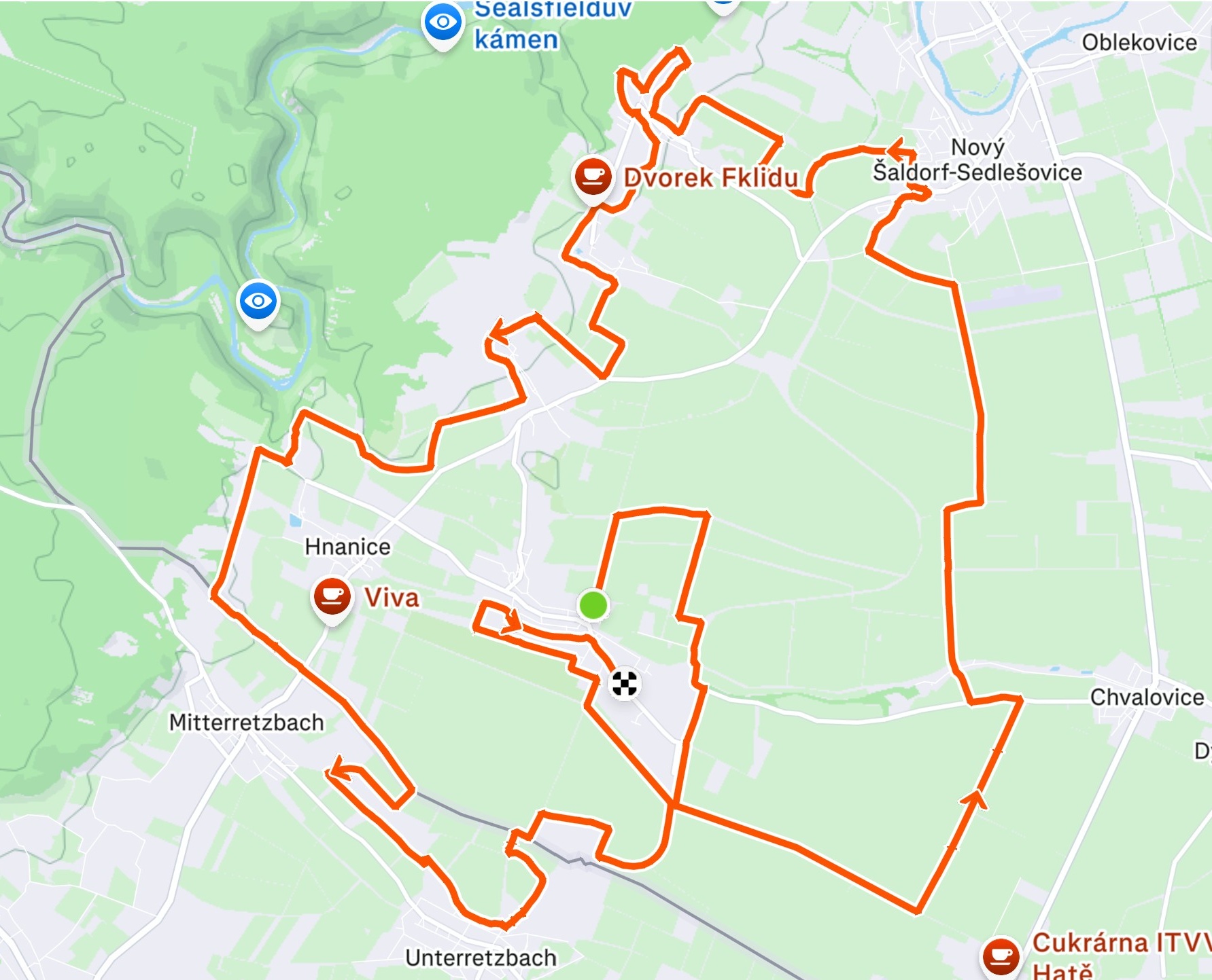 Povrch: polní a lesní cesty, místy asfalt
